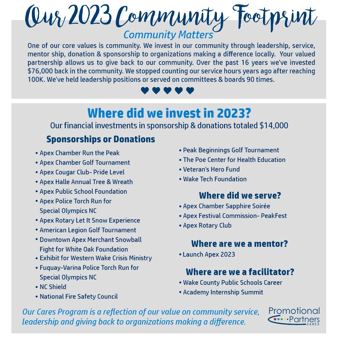 Champions are mentors, coaches and friends that find ways to invest in the activities that bring them joy and balance in life. We feel centered when we give to others. It's giving back that inspired me to start our Promotional Partners Cares program back in 2020. It's also a deep love of community, watch here, that motivates me to put a spotlight on programs making a difference locally & globally.